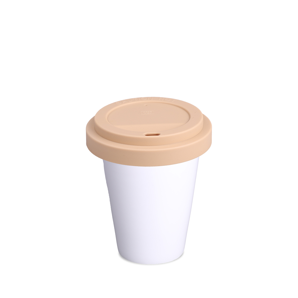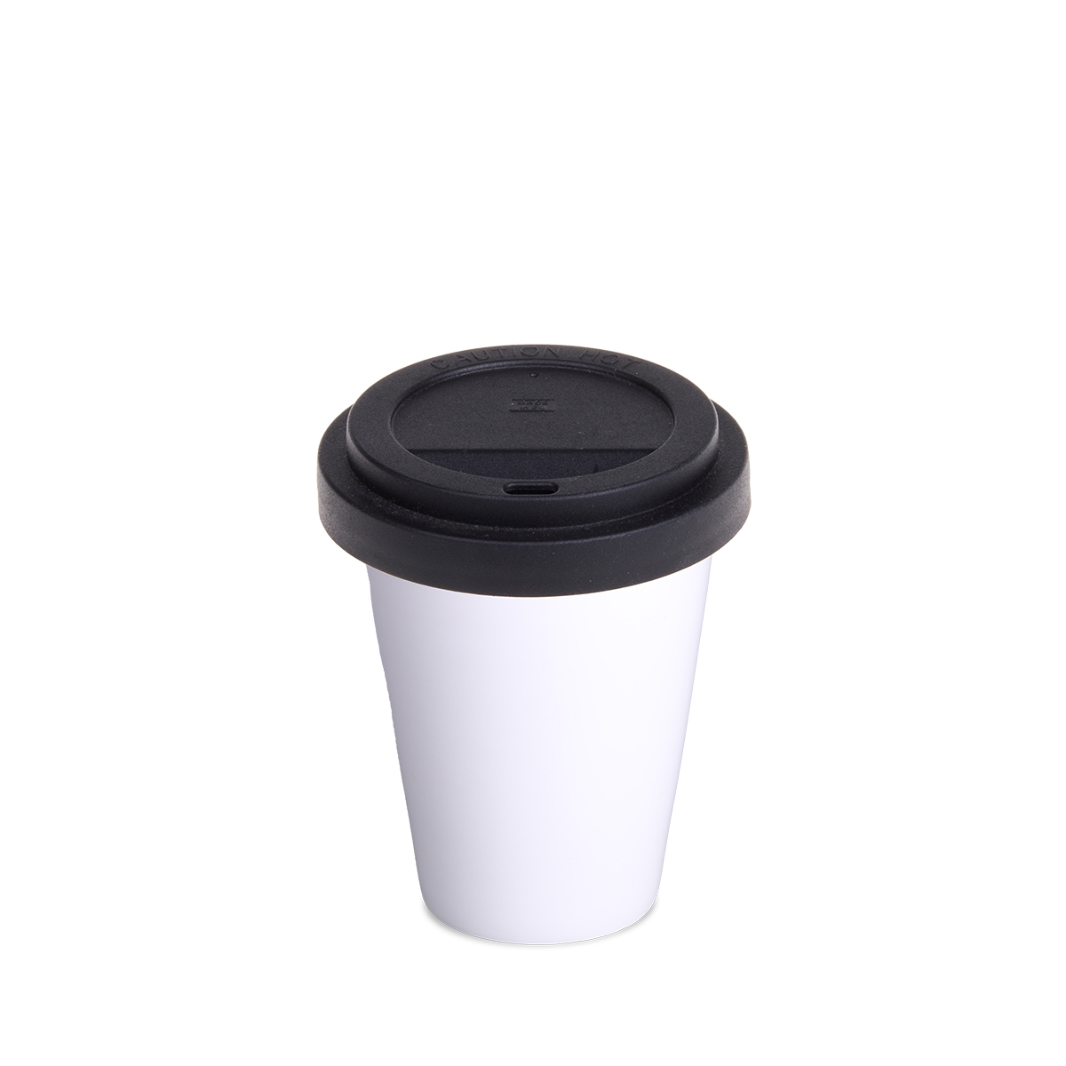 Praktyczny kubek porcelanowy z polimerową przykrywką chroniącą przed przypadkowym rozlaniem napoju. Dzięki rzadko spotykanej, wewnętrznej strukturze podwójnych ścianek z porcelany kubek ten charakteryzuje się podwyższonym poziomem izolacji termicznej. Korpus kubka dostępny w kolorze białym i satin black. Przykrywka dostępna w następujących kolorach: biały, pomarańczowy 021C, szary Cool Gray 7, granatowy 294C, brązowy 4695C, czarny, różowy 4064C, niebieski 2144C, eucalyptus 5493C, desert sand 2310C